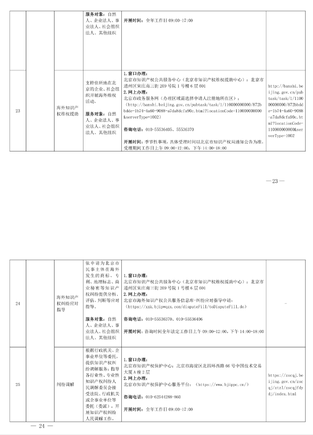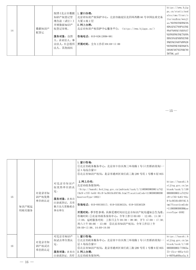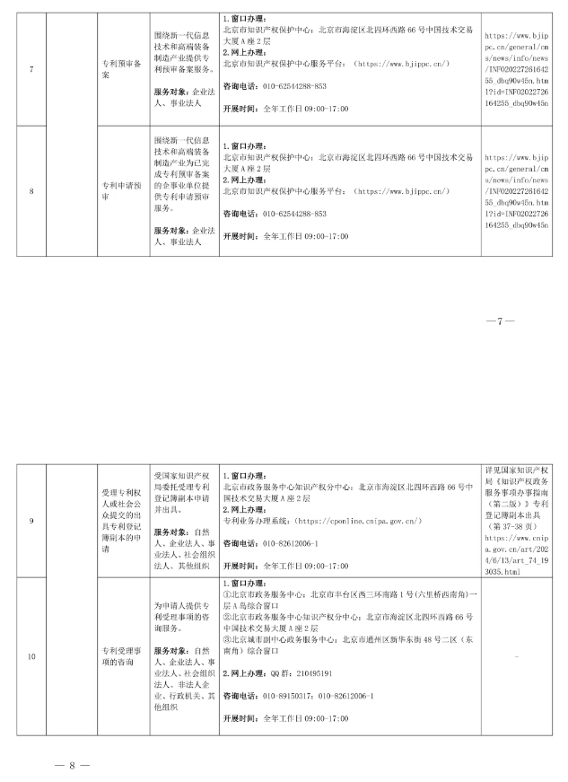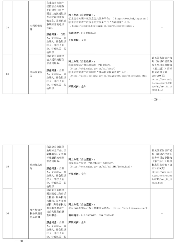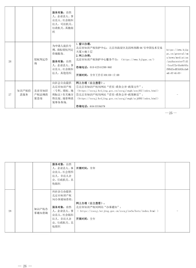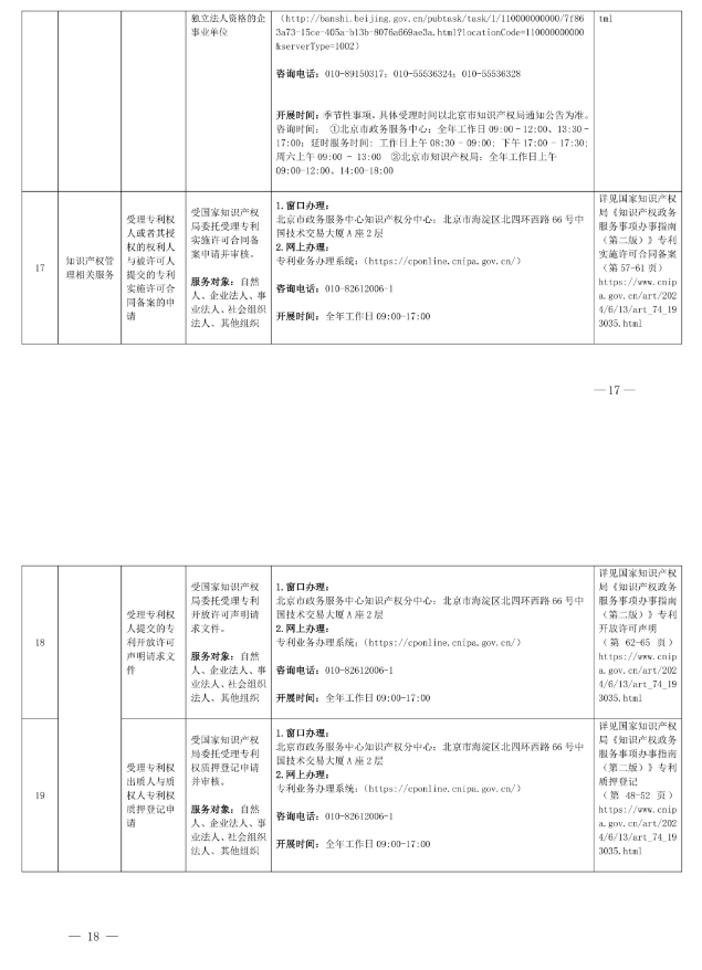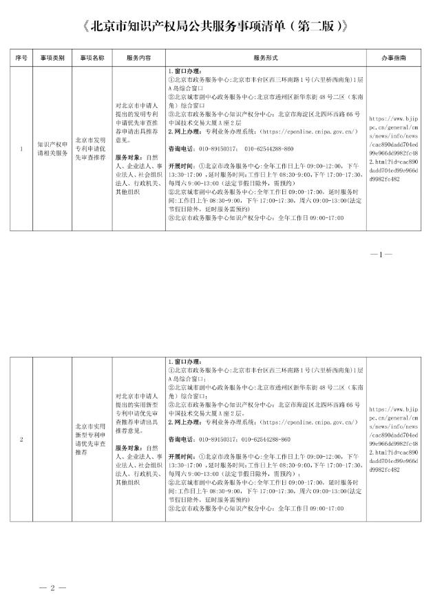 北京市知识产权局公共服务事项清单(第二版)
