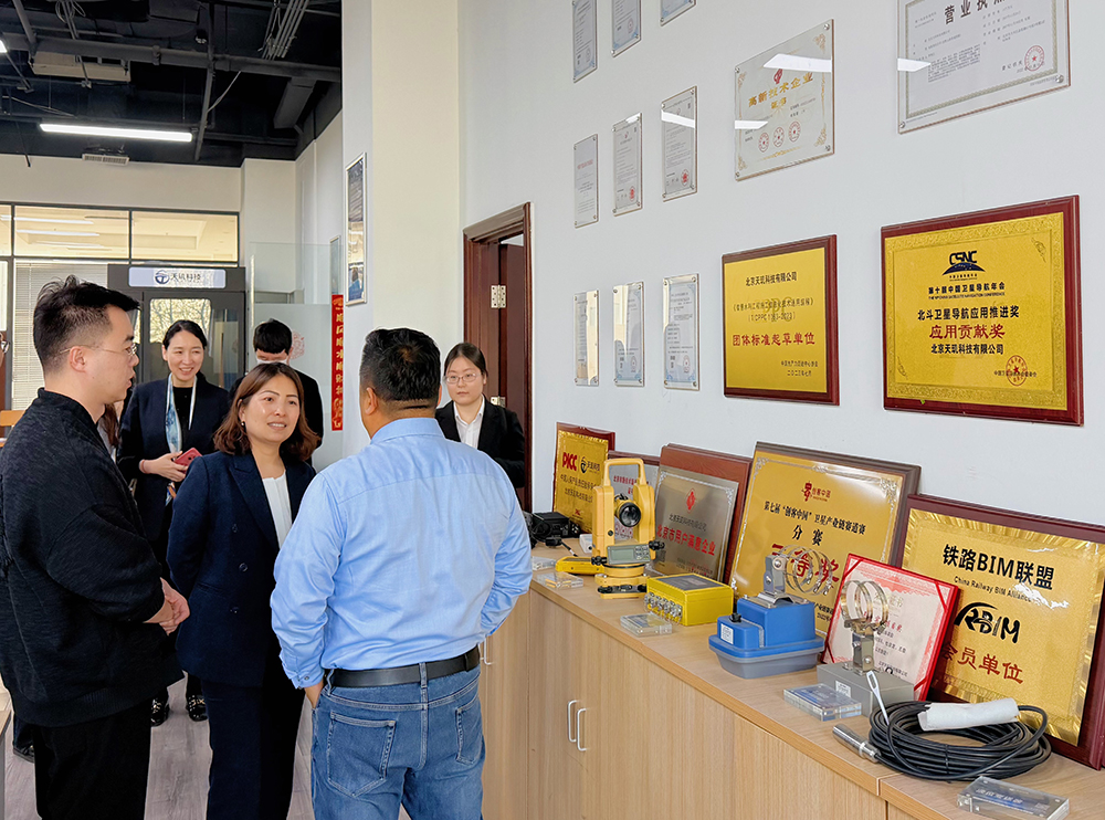 第二站抵达北京天玑科技有限公司。作为北京市“专精特新”中小企业,天玑科技深耕北斗智能建造领域,自主研发“感知—分析—决策—控制”全链条数智化产品,广泛应用于公路、铁路、水利、机场等重大工程。总经理罗树江现场演示了其工程质量动态监测平台,并分享了企业近期的良好发展态势。